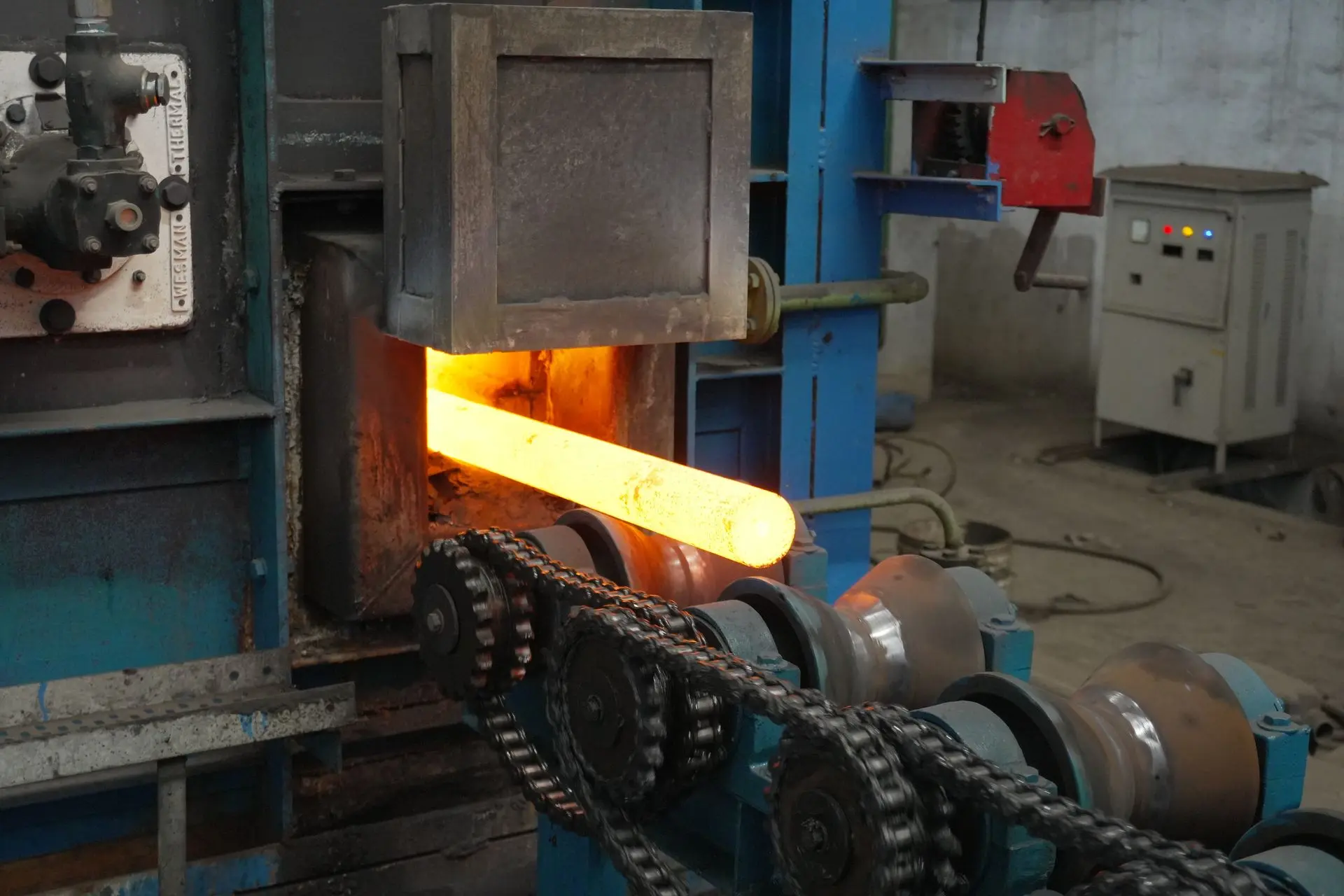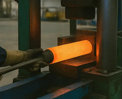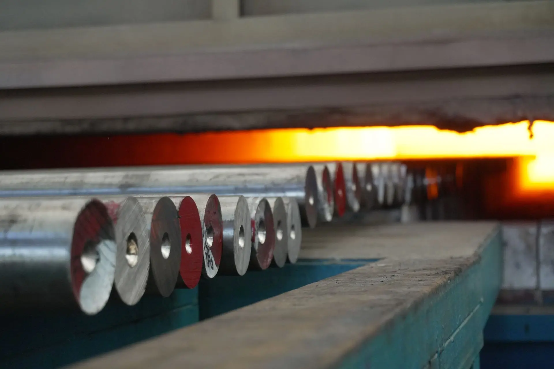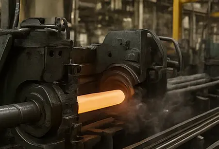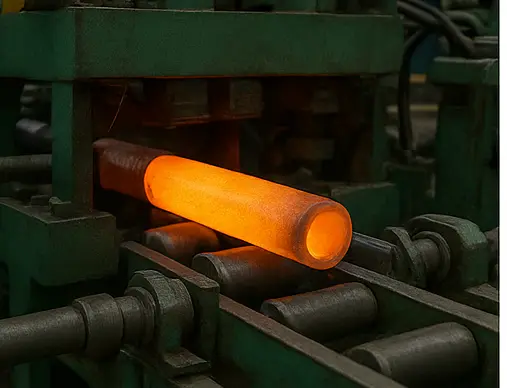 -> The hot piercing process transforms a solid steel billet into a hollow tube through a combination of high pressure, rotation, and heat.