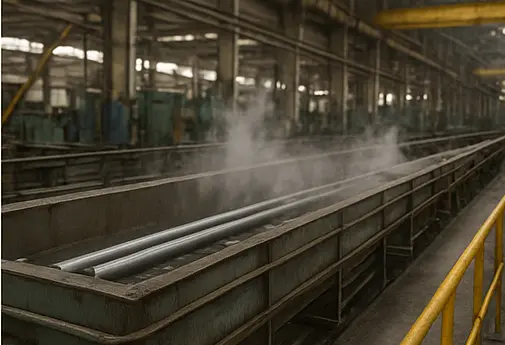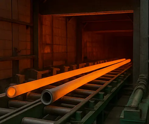 • Normalizing: Pipes are heated above the transformation range and air-cooled to refine grain structure and enhance mechanical properties.