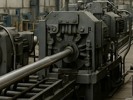 The hot piercing mill is a key process in the production of seamless pipes and tubes, enabling the transformation of solid steel billets into hollow tubes through a highly efficient and precise method. In this process, heated steel billets are driven through rotating rolls and pierced by a mandrel, creating a hollow shell. The piercing action, combined with extreme heat, allows the steel to be shaped into a seamless tube with uniform Simensions.